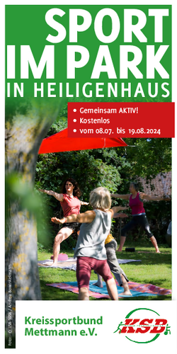 Sport im Park ist ein offenes Sport- und Bewegungsangebot der SSVg Heiligenhaus 09/12 e.V. in Kooperation mit dem Kreissportbund Mettmann e.V. für alle interessierten Bürger*innen.